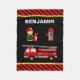 Niedliche Feuer-Motor-Themadecke, die einen schönen Firetruck und niedlichen feuerlöschenden Elemente kennzeichnet. Fertigen Sie sie mit dem Namen Ihr Kindes besonders an.