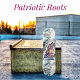 Feuerwerke, die in explosiven Fackeln platzen, Hervorhebung dieses Symbols, einer wehenden, amerikanischen Flagge, Anzeige, farbenfrohe Sprays von; rot, weiß, blau, grau, silber, gelb, grün und lila gegen einen Dämmerung, Himmel.