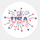 Fireworks USA Patriotic Red White Blue Runder Aufkleber