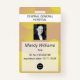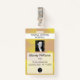 Foto-Vorlage mit Logo, Firma-ID-Abzeichen für Mitarbeiter, Krankenhaus, Krankenschwestern, besondere Veranstaltungen Treffen. Dekorative Gradienten gelbe Wellen und die Informationen auf einem transparenten Rahmen.