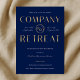 Erstellen Sie moderne Einladungen für ein Team-Building-Wochenende mit diesem Navy-Blau und Gold Firmen-Rückzugs-Einladungsdesign. Mit Faux-Goldfolien-Effekten, minimalem Layout und Ihrem individuellen Logo können Sie mit diesem Marketing-Flyer für den Geschäfts-Rückzug die Hintergrundfarben und Ereignisdetails bearbeiten, um es an Ihr Ereignis anzupassen.