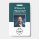 Professioneller Ausweis mit einem Profilfoto und Firmenlogo. Diese editierbare Vorlage kann mit einem Namen, einer Jobbezeichnung, Kontaktdaten, einer Mitarbeiter-ID-Nummer und einem scannbaren QR-Code personalisiert werden. Sie verfügt über eine einfache, moderne Typografie und ein minimalistisches Design. Dieser stilvolle Ausweis ist geeignet für die Identifikation am Arbeitsplatz, Sicherheit, Networking, Konferenzen und jede Rolle, die eine sichtbare ID erfordert. Er bietet voll anpassbaren Text, um Ihre Geschäftsmarke anzupassen und ist ideal für eine Vielzahl von Berufen, einschließlich Corporate- und Executive-Rollen, Unternehmensberater, Unternehmer, Kleinunternehmer, Rechtsberufe und viele andere. Druckfarben: dunkles Tealgrün, Schwarz und Weiß oder passen Sie die Farben mit dem Design-Tool an.