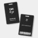 Eine Vorlage für schwarzes Abzeichen, die Sie anpassen können. Passen Sie das Abzeichen für Ihre Veranstaltung mit Text, Foto, Logo-Bild an. Ideal für ein Büro, Mitarbeitererkennung, Konzert, Fest, Kongress, private Veranstaltung oder Party. Passen Sie den Text, das Logo und den Bar Code an und machen Sie ihn zu Ihrem eigenen.