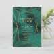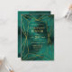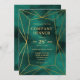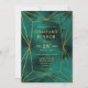 Moderne und elegante Einladung mit goldschmuckähnlichen geometrischen Linien mit einem moody smaragdfarbenen Aquarell.