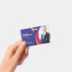 Stilvolles, modernes und feines Fließbanddesign mit stylisierten fließenden Farbelementen in lila, tiefer Magenta, gelb und blau. Das fließende Design schafft einen modernen Hintergrund mit einem personalisierten Foto, Namen, Titel und Logo.