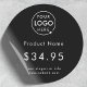 Ein einfaches, benutzerdefiniertes schwarzes Tagaufkleber-Business-Template in modernem minimalistischem Stil, das leicht mit Ihrem Firmenlogo, Produktnamen, Preis und Firmenlogo oder Infos aktualisiert werden kann. Brauchst du Hilfe? Kontaktieren Sie mich bitte über den Meldungsknopf. Gerne helfe ich Ihnen bei der Personalisierung, zusätzlichen Artikeln oder Sonderanfertigungen.