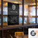 Ein einfaches, benutzerdefiniertes, schwarzes Unternehmen Vinyl Kleber-Dekorschild-Template in modernem minimalistischem Stil, das leicht mit Ihrem Firmenlogo, Titel und Firmenlogo oder info aktualisiert werden kann.