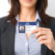 Foto Name Business Logo Custom Abzeichen ist personalisieren ID-Karte für Ihr Unternehmen, Unternehmen oder Unternehmen für Ihre Mitarbeiter. Ersetzen Sie Informationen durch Ihre und schreiben Sie Ihre Philosophie auf der Rückseite des Abzeichens. Jeder Mitarbeiter sollte einen haben, um sich mit seinen Kunden und Kunden zu identifizieren.