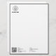 Ein einfaches, benutzerdefiniertes Briefkopf-Template in modernem minimalistischem Stil mit einem einfachen schwarzen Rahmen, der leicht mit Ihrem Firmenlogo und Briefkopf-Fußzeile einschließlich Firmenname, Adresse, Telefon, E-Mail, Website und QR-Code aktualisiert werden kann