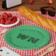 Firmenlogo Monogramm Papierplatte Schriftart in knallgrün mit Monogramm Erstgeschenk in der Mitte für Business Party Weihnachtsfeier