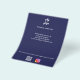 Navy blauer Hintergrund, weißer Text. Personalisieren Sie Ihr Firmenlogo, Ihren Namen, Ihre Adresse, Ihren Text, Ihren eigenen QR-Code und fügen Sie ihn Ihrem Instragentenkonto hinzu.