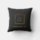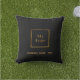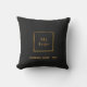 Ein eleganter schwarzer Hintergrund. Vorlagen für Ihr Unternehmen, Firmenlogo und Text. Goldene Buchstaben. Wenn Sie das Kissen ohne Text gewollt haben, löschen Sie mit Ihrem Backspace-Schlüssel. Dieses Kissen ist auch in unserem Geschäft mit weißem Text erhältlich.