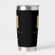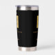 Ein schwarzer Hintergrund. Personalisieren und fügen Sie Ihr Firmenlogo, Text (oder löschen) und Ihren Namen/Ihre Unterschrift hinzu. Goldener Text.