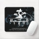 Firmenlogo und Infos mit schwarzem Rauch-Hintergru Mousepad