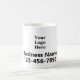 Eine Business-Tasse ist eine einfache Möglichkeit, Ihr Unternehmen zu fördern. Ein Anzeigebild liegt über zwei Zeilen schwarzen Bildschirmtextes. Sie können das Bild durch Ihr Firmenlogo ersetzen. Sie können den Text bearbeiten, um eine benutzerdefinierte Nachricht wie Ihren Firmennamen und Ihre Telefonnummer anzuzeigen.