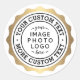 Aufkleber mit Ihrem individuellen Firmenlogo, Bild oder Foto in einem Imitat Gold (bedruckter Farbverlauf, nicht reale Folie), scharfen Rahmen und Rundtext.