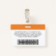 Dieses Abzeichen mit dem Namen des eigenen Mitarbeiters kann einfach mit Foto, Scan Bar Code und Firmenlogo personalisiert werden. Es enthält den Namen der Person, den Beruf, den optionalen Identitätscode und den Metallclip. Ein Abzeichen mit Markenzeichen zur Identifizierung von Mitarbeitern, Besuchern oder Gästen, Ärzten, Krankenpflegern und Ärzten. Ein einfaches Business-Design mit großem Foto in Mandarine Orange und Weiß, vollständig anpassbar in Vorder- und Rücken-Größen, in jedem Farbhintergrund, serifenlos, einfache und moderne Schriftart und ein berufliches und klares Aussehen. Ein nützliches Werkzeug für Firmenveranstaltungen, Wiedersehen, Erneuerungen und Feiern. Erstellen Sie mehr Corporate Foto Abzeichen Identifizierungskarte in verschiedenen Farben für jede Kategorie, die Sie identifizieren müssen: Mitarbeiter, Besucher oder Gäste. Verfügbar mit oder ohne Lanyard, Metallklammer oder mit Retraktierbar. Keine Mindestbestellung.