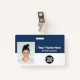 Dieses Abzeichen mit dem Namen des eigenen Mitarbeiters kann einfach mit Foto, Scan Bar Code und Firmenlogo personalisiert werden. Es enthält den Namen der Person, den Beruf, den optionalen Identitätscode und den Metallclip. Ein Abzeichen mit Markenzeichen zur Identifizierung von Mitarbeitern, Besuchern oder Gästen, Ärzten, Krankenpflegern und Ärzten. Ein einfaches Business-Design mit großem Foto in marineblau und weiß, vollständig anpassbar in Vorder- und Rücken-Größen, in jedem Farbhintergrund, serifenlosen Schriftart und einem beruflichen und klaren Look. Ein nützliches Werkzeug für Firmenveranstaltungen, Wiedersehen, Erneuerungen und Feiern. Erstellen Sie mehr Corporate Foto Abzeichen Identifizierungskarte in verschiedenen Farben für jede Kategorie, die Sie identifizieren müssen: Mitarbeiter, Besucher oder Gäste. Verfügbar mit oder ohne Lanyard, Metallklammer oder mit Retraktierbar. Keine Mindestbestellung.