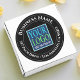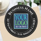 Firmenname, Logo, Anschrift, weißer Text auf schwa Runder Aufkleber