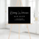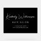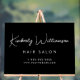 Schick schwarzes Acryl für Ihr Unternehmen mit minimalistischer Optik mit Firmenname oder Marke in einem stilvollen weißen Signaturskript und zusätzlichem Text, falls gewünscht in der modernen weißen Typografie.