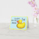 Auf einem blauen und polka dot hintergrundbelassenen Gummischuhn süß und anpassbar.
