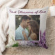 Celebrate new beginnings and blooming romance with this custom lilac-themed pillow. Featuring your favorite photo against a rustic wooden background with delicate lilac blossoms, this personalized design captures the fresh beauty of love's first moments. The poetic phrase "First Blossoms of Love" perfectly complements the springtime aesthetic, making it a heartfelt decoration for your home or a romantic gift for your partner.