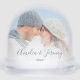 First Christmas Engaged 2 Photo Dusty Blue Script Schneekugeln