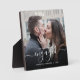 Commemorate your engagement with this beautiful modern keepsake plaque. The white text reads "Our first Christmas engaged," with the word "engaged" in elegant handwriting script with flourishes before and after. Replace the sample image with your favorite photo, and add your names and the year. A black gradient filter helps make the text pop.