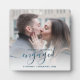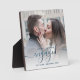 First Christmas Engaged Photo Metallic Blue Script Fotoplatte