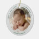Celebrate the magical milestone of being new grandparents with this beautiful Grandparents' First Christmas Baby Photo Ornament! This elegant ceramic ornament is designed to cherish that special "first Christmas" with your beloved grandchild. The front features a round photo template to perfectly showcase your precious baby's picture, set against a stunning crushed white foil digital effect background with subtle sparkle for a truly luxurious and festive touch.