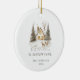 Celebrate the magic of your first Christmas in your new home with this beautifully designed ceramic ornament featuring a cozy winter view.