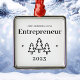 Erste Weihnachten als Unternehmer Luxus-Stil-Ornament für jemanden, der selbstständig und startet eine neue Arbeit. Elegante Urlaubsornamente in Weiß mit schwarzen Buchstaben, Bäumen und Sternen.
