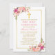 First Communion Watercolor Pink Blush Floral Gold Einladung