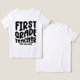 Welcome your students to class for the new school term with this “First Grade Teacher” black retro inspired typography design t-shirt. Make it extra special by customizing it with your name! This would make a great gift for a teacher in your life! For questions or requests regarding this design, please contact us via the chat; we’d be happy to help!