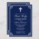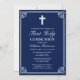 First Holy Communion Elegant Woven Frame Navy Blue Einladung