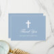 Elegant First Holy Communion Thank You Card with Cross. Light Blue. Photo Back. Silver Frame.