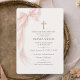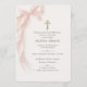 Elegant First Holy Communion invitation featuring a soft pink bow design for a graceful and feminine celebration. Perfect for honoring your daughter special sacrament with a timeless, delicate style. Ideal for Catholic church ceremonies, family gatherings, and communion celebrations. Editable text. Print ready layout.