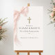 Elegant First Holy Communion welcome poster featuring a soft pink bow design for a graceful and feminine celebration. Perfect for welcoming guests and creating a beautiful entrance display for your daughter special day. Ideal for church receptions, party entrances, and communion celebrations. Editable text. High quality print ready layout.