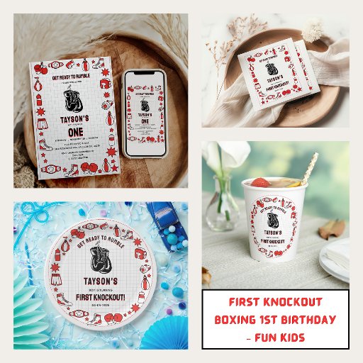 Serve up a punch of fun! 🥊 These First Knockout Boxing 1st Birthday paper plates are perfect for little champs. Colorful, playful, and durable, they match your boxing-themed party perfectly. Ideal for cake, snacks, or party food, these themed plates make every bite part of the celebration. Knockout style for your little one’s big day!