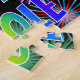 This vibriert, exciting, birthday-themed jigsaw puzzle design feature the message "HAPPY BIRTHDAY, NICOLE" having a colorful rainbow spectrum inspirred gradient pattern and a lively bursting celebratory fireworks inspirred background pattern. Ein vibrierendes Puzzle like this might be a fun way to acknowledge the birthday of somebody named Nicole. [~ Z0000465]