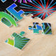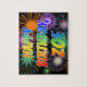 This exciting, vibriert, birthday-themed jigsaw puzzle design has the message "HAPPY BIRTHDAY, ZOE" having a colorful rainbow spectrum inspirred gradient pattern and a fun bursting celebratory fireworks inspirred background pattern. In Colorful Puzzle like this might be a fun way to send birthday greetings to somebody named Zoe. [~ Z0000465]