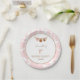 The background of the paper plate showcases a stylish pink cowhide pattern, giving the design a trendy Western flair your guests will love. Perfect for cowgirl-themed parties, farm birthday themes, or rustic first birthday celebrations.