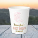 First rodeo with pink floral cowboy boots, paper cups for a wild west themed first birthday party. Vintage pink and brown with western font for your birthday details. Customize with your information. Matching party supplies, invitations and signs are available in the First Rodeo Pink Cowgirl 1st Birthday Baby Girl Collection in The Gathering Designs store.