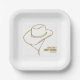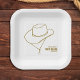 First Rodeo western cowgirl 1st birthday paper plates. Create the perfect wild west birthday party with a clean white plate and simple brown cowboy hat with birthday details.. Customize with your information. Matching party supplies, invitations and signs are available in the First Rodeo Pink Cowgirl 1st Birthday Baby Girl Collection in The Gathering Designs store.