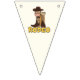 Niedliches braunes Pferd in den Cowboystiefeln, Beige- und Orangetönen