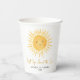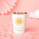 These cute paper cups are decorated with a yellow watercolor smiling sun and feature the phrase "First Trip Around the Sun" in stylish script typography.