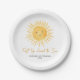 These cute paper plates are decorated with a yellow watercolor smiling sun and say "First Trip Around the Sun" in stylish script typography.