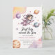 Designed in a modern pastel palette of blush pink, lavender, and soft peach, this invitation blends a playful space theme with a gentle, feminine aesthetic perfect for a 1st birthday celebration.