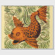 Fish Tile Graphic - Dieser antike orangefarbene Fisch ist ein Grafikdesign, das auf einer Viktorianischen Kachel des 18. Jahrhunderts des berühmten Kunsthandwerkers William De Morgan basiert. Das Gemälde basiert auf der Kunst- und Handwerksbewegung und blickt zurück zu den alten Fischkacheln aus Griechenland und Rom.
