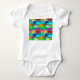 Dieser Baby-Bodysuit hat ein Design einer Fischschule in Grün, Blau, Orange, Gelb, Rot, Rosa und Blau-Grün im Ozean. Ändern Sie den Text oder entfernen Sie ihn, falls gewünscht.